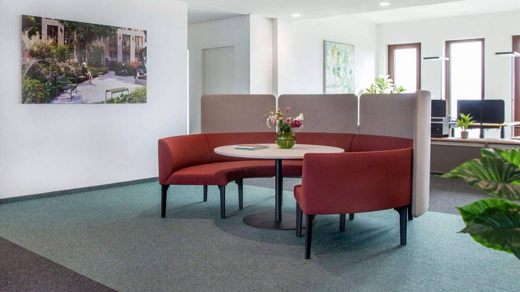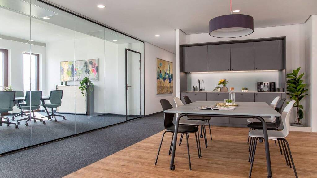 Besonderes Highlight ist der begrünte Innenhof, der direkt an ein Naturschutzgebiet grenzt und eine außergewöhnliche Aufenthalts- und Erholungsqualität bietet. Unternehmen profitieren von flexiblen Grundrisslösungen, die unterschiedliche Arbeitsformen ermöglichen.