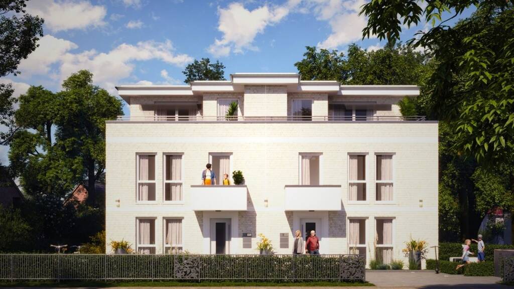 Die Bauausführung wird als zweigeschossiges Gebäude zuzüglich eines Staffelgeschosses und eines unterliegenden Gartengeschosses erfolgen und in zwei Haushälften mit jeweils zwei Eigentumswohnungen unterteilt werden. Jede Haushälfte wird ein separates Treppenhaus mit Allgemeinfluren erhalten, die den Zugang zu den Wohnungen und Räumen im Untergeschoss (Gartengeschoss) schaffen. Im Vorgarten wird ein voll versenkbarer Parklift mit Begrünung für vier Pkw-Stellplätze entstehen, die optional erworben werden können. Die Errichtung der Stadtvilla wird in hoher Bauqualität erfolgen nach KfW55-Effizienzstandard und mit einer Luft-Wasser-Wärmepumpe und Fußbodenheizung ausgestattet werden. Die Gestaltung der jeweiligen Wohnungen beinhaltet u.a. Parkettböden in Fischgrätmuster in den Wohnräumen und Bäder mit großformatigen Porcelaine-Fliesen und Produkte von Kaldewei, Dornbracht und Duravit.
