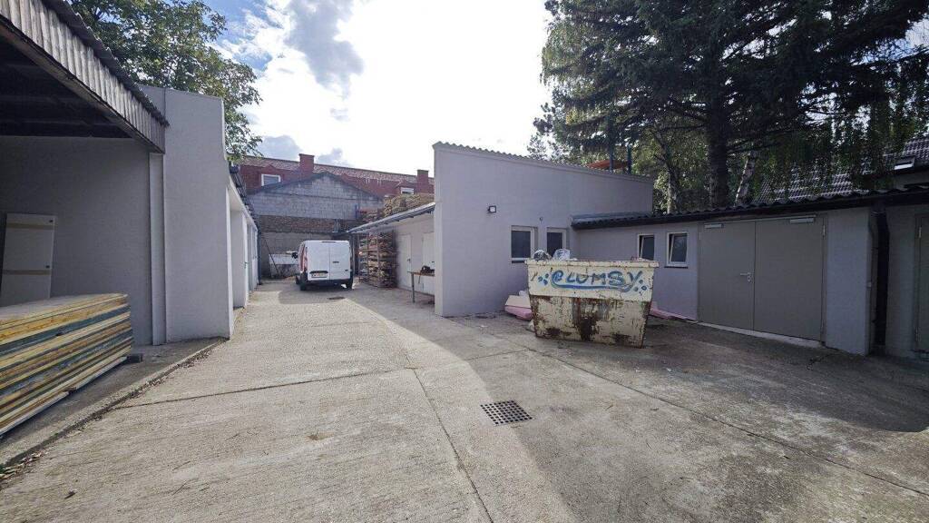 Das in einem Hof gelegene Grundstück hat ein Gesamtausmaß von ca. 510m², wovon ca. 254m² auf die Gebäude entfallen und somit ca. 256m² befestige Freifläche zur Verfügung stehen. Der Lagerplatz hat eine eigene Zufahrt, die durch zwei Tore gesichert ist.
