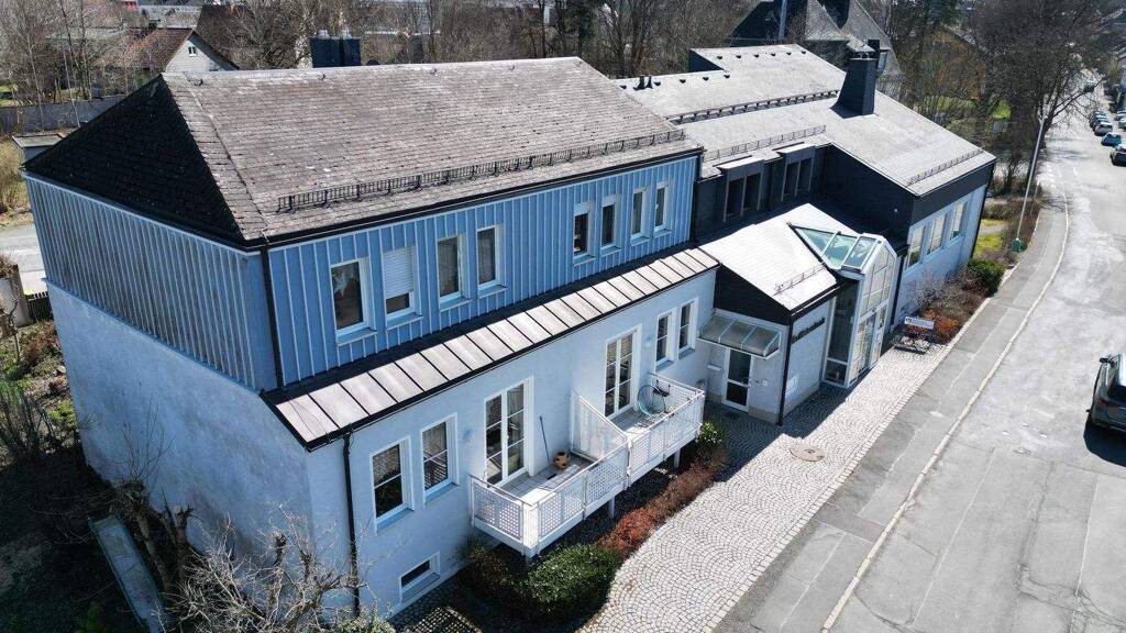 Das Bankgebäude wurde 1982 mit einem Anbau deutlich erweitert und bietet eine Gesamtnutzfläche von 486 m². Es ist architektonisch anspruchsvoll gebaut und verfügt über teilweise offene Bereiche, Büros bis hin zum Versammlungsraum über vielseitig nutzbare Flächen. Wertige Einbaumöbel, die zum Verkaufsumfang gehören, runden das Angebot entsprechend ab.