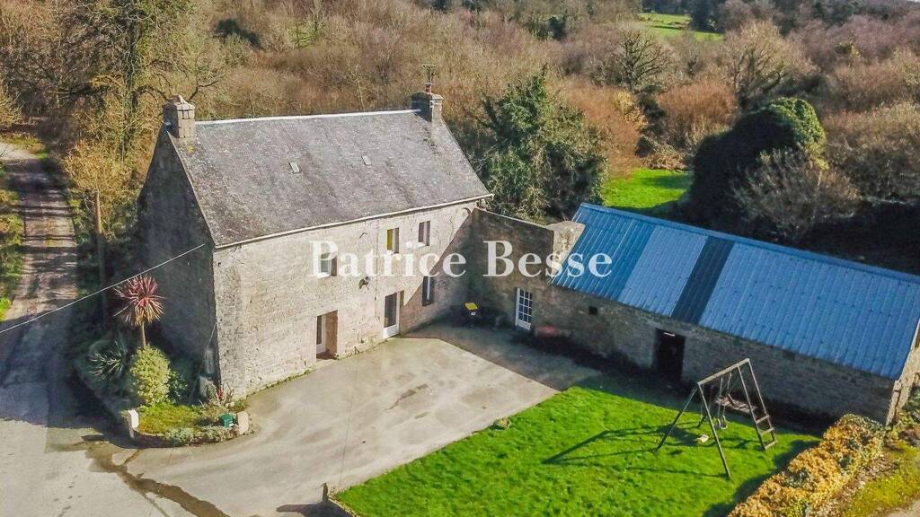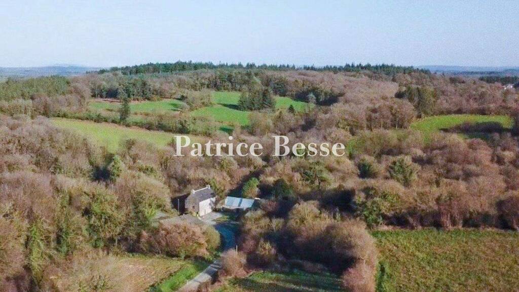 A former farmhouse with outbuildings in more than 17 hectares, near to Guerlesquin, in the countryside around Trégor.
