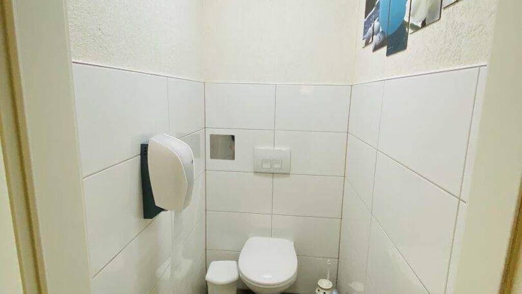 * Sanitärbereich mit Dusche: Komfortabel ausgestattet, ideal für Personal und Kundschaft.