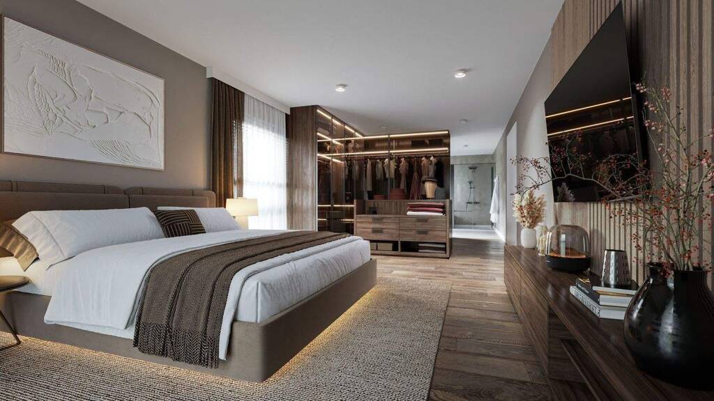Die angrenzende, über 30?m² große Terrasse ist sonnig ausgerichtet und bietet maximale Privatsphäre – ein exklusiver Rückzugsort mit Weitblick. Das Hauptschlafzimmer begeistert mit großzügigem Schnitt und direktem Zugang zum stilvollen En-Suite-Bad, das mit Tageslicht, Badewanne und Dusche zur persönlichen Wohlfühloase wird. Auch das zweite Schlafzimmer bietet viel Raum zur Entfaltung und direkten Zugang zur Terrasse.
