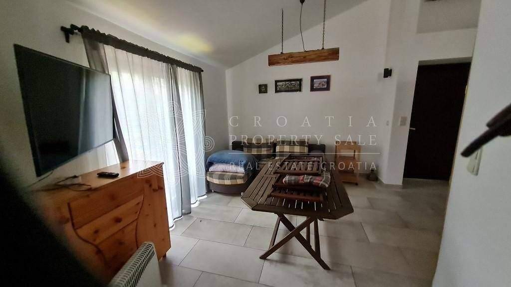 This Croatia Murter Sibenik stone house for sale consist of 2 apartments (each with 2 bedrooms and terraces) and cozy garden with garden shed and fireplace. There are no other houses on the back side, only olive groves and nature. There is an air-condition device in each apartment.