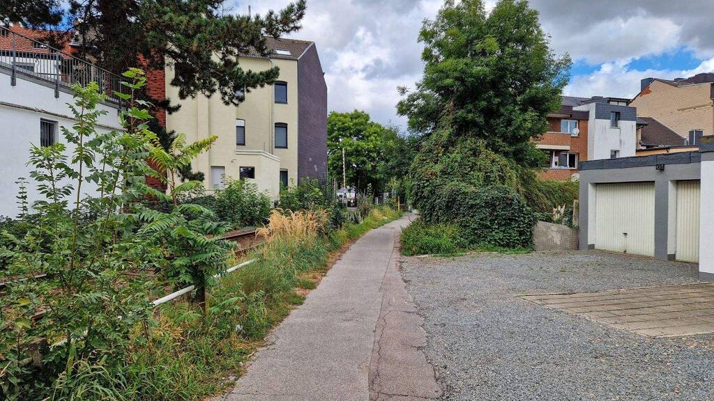 Das Haus befindet sich in der Tivolistraße in Düren. Der kleine Garten liegt nach hinten. Er ist südöstlich ausgerichtet. Der Bereich hinter dem Garagengrundstück ist südwestlich ausgerichtet. Hier können Sie einen zweiten, größeren Garten anlegen.