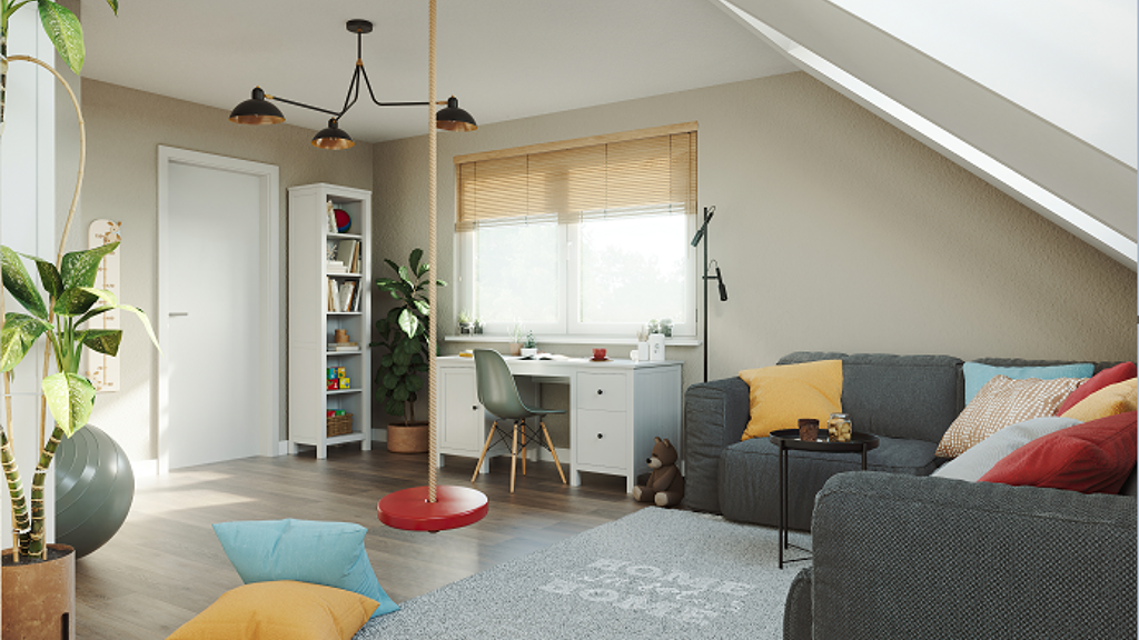 Im Dachgeschoss befindet sich ein helles und geräumiges Studio, das flexibel als Arbeitszimmer, Gästezimmer oder zusätzlicher Wohnraum genutzt werden kann.