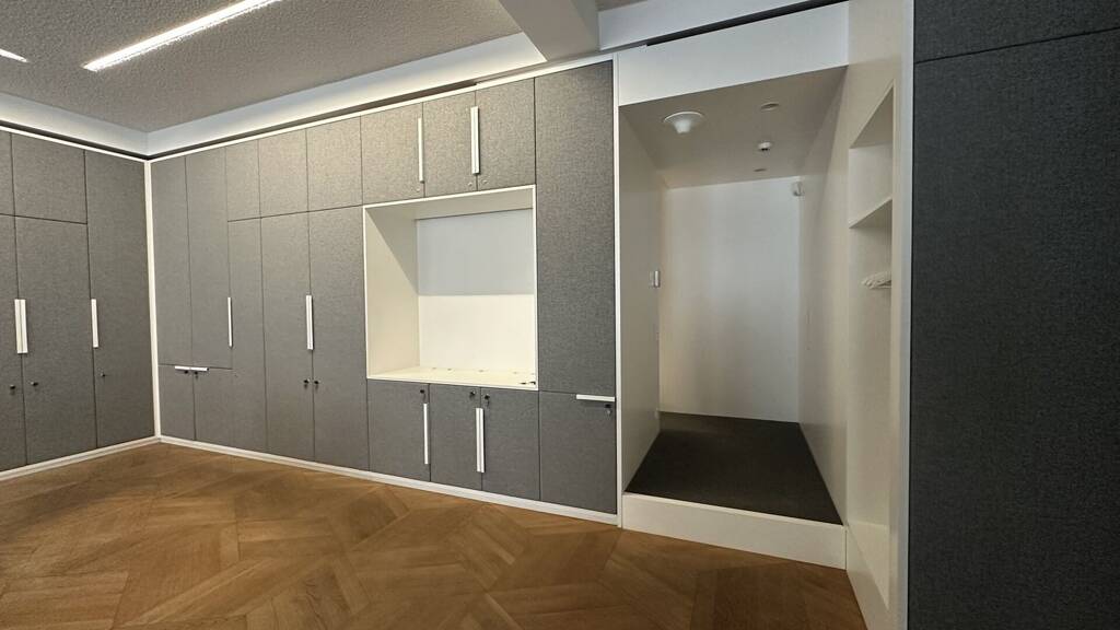 Zwei separat angelegte Besprechungsräume bieten ausreichend Platz für Meetings und Kundengespräche, während die maßgefertigte Teeküche den Mitarbeitenden eine komfortable Rückzugsmöglichkeit im Arbeitsalltag bietet. Ergänzt wird das Raumangebot durch einen eigenen Technik- bzw. Serverraum sowie einen praktischen Lager- bzw. Archivbereich, wodurch auch organisatorische Anforderungen optimal abgedeckt werden. Die modernen Designer-WC-Anlagen für Damen und Herren unterstreichen den hochwertigen Gesamtcharakter der Fläche.