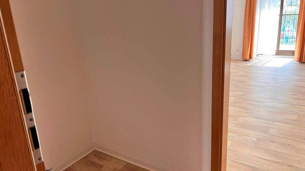 Die Wohneinheit ist in Flur, Wohn- und Schlafzimmer, Terrasse, Küche, Abstellraum und Badezimmer ausgestattet.