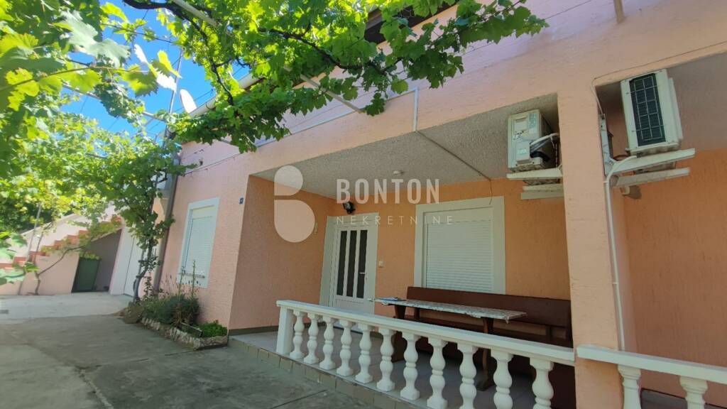 Wir bieten ein wunderschönes Haus mit zwei Wohnungen und einer geschlossenen Garage mit automatischem Toraufzug im südlichen Teil von Vir Prezid an. Der Strand ist nur 200 m entfernt.