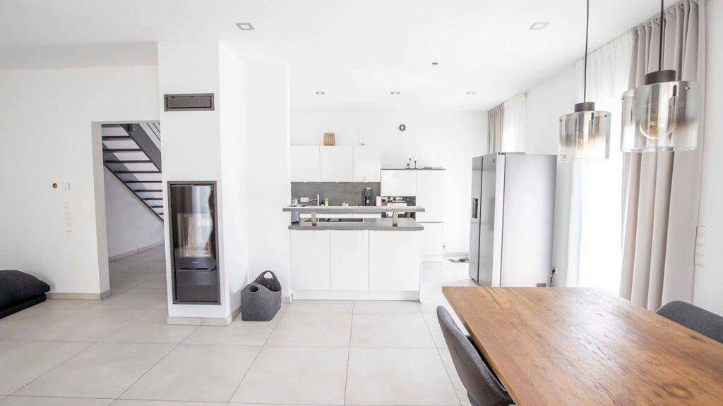 Im EG dieses durchdachten KfW55 Massahauses ist neben der attraktiven Einliegerwohnung mit ca. 53 m² der repräsentative lichte Wohn- und Essbereich mit EBK sowie der Hauswirtschaftsraum angelegt. Besonders anzumerken ist, dass Sie von jedem dieser Räume in den Garten bzw. die Terrasse gelangen.