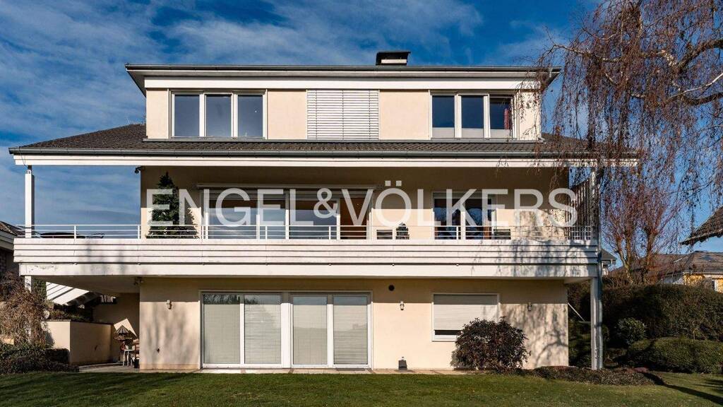 Betreten Sie ein Zuhause, das mit seinem offenen Raumkonzept und der hochwertigen Ausstattung beeindruckt. Der großzügige Wohn- Essbereich mit Kamin strahlt Wärme und Gemütlichkeit aus, die angrenzende Bibliothek dient als stilvoller Rückzugsort und garantiert gemütliche Lesestunden. Beide Zimmer führen auf den umlaufenden Südbalkon, der einen phänomenalen Ausblick erlaubt und auf die wind- und blickgeschützte Terrasse führt. Hier muss man sich entspannen! Neben der mit Markengeräten ausgestatteten Küche runden ein Arbeitszimmer mit kleinem Balkon, ein Gäste-Bad und ein Waschraum diese Ebene ab. Das Obergeschoss beherbergt ein Schlafzimmer mit 2 separaten Ankleiden, das Hauptbadezimmer mit Dusche und Badewanne sowie ein sehr großzügiges Studio, welches flexible Nutzungsmöglichkeiten bietet. Besondere Aufmerksamkeit verdienen die maßgefertigten und stilvollen Einbauschränke im Haus. Im Gartengeschoss können Sie sich um sich kümmern: Hier steht ein Wellnessraum mit Sauna, Solarium und großer Dusche zur Verfügung. In den weitläufigen und komplett eingezäunten Außenbereich gelangen Sie durch ein unterschiedlich nutzbares Gartenzimmer; hier können Sie nach der Sauna die Seele baumeln lassen oder einen Fitnessbereich generieren. Durch das WC ist diese Ebene auch für Gäste bestens geeignet. Eine Doppelgarage bietet ausreichend Platz für Ihr Fahrzeug. Die separat zugängliche Einliegerwohnung erlaubt zusätzliche Flexibilität, sei es für Gäste, Familienmitglieder oder zur Vermietung.