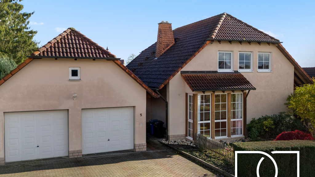 Das 1993 erbaute Haus erstreckt sich über zwei großzügige Etagen plus voll nutzbarem Keller und bietet 166,12m² Wohnfläche. Das Grundstück umfasst beeindruckende 957m² und gewährt mit einer dichten Hecke, gewachsenem Baumbestand und großer Rasenfläche absolute Privatsphäre. Das massiv errichtete Gartenhaus mit Stromanschluss eröffnet vielfältige Nutzungsmöglichkeiten - vom Hobbyraum bis zum Rückzugsort im Grünen. Zwei elektrisch betriebene Garagentore geben Zugang zur Doppelgarage, hinter der sich eine weitere Garage mit Starkstromanschluss befindet. Der über der Garage liegende, separat zugängliche Abstellraum bietet zusätzlichen Stauraum - perfekt für Werkstatt, Lager oder Hobby.