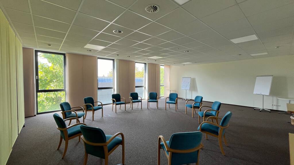 Die Büroräumlichkeiten mit ca. 85 m² Nutzfläche werden aktuell als Seminarräumlichkeiten betrieben, befinden sich im 2.OG vom Haus K, sind hell und freundlich und ausgestattet mit einer Kühlung, kontrollierten Be- und Entlüftung, mit Nadelfilzteppich, CAT 7 Verkabelung über Bodendosen, außenliegender Sonnenschutz mit Motorantrieb und Tageslichtsteuerung und einem elektronischen Zutrittssystem. Die allgemeine WC-Anlagen im EG können mitbenutzt werden. Kostenlose Kundenparkplätze sind im Areal vorhanden. Stellplätze für Mitarbeiter können im angrenzenden Parkhaus um € 56,- netto p.m. zzgl. € 13,50 p.m. Betriebskostenpauschale gemietet werden.