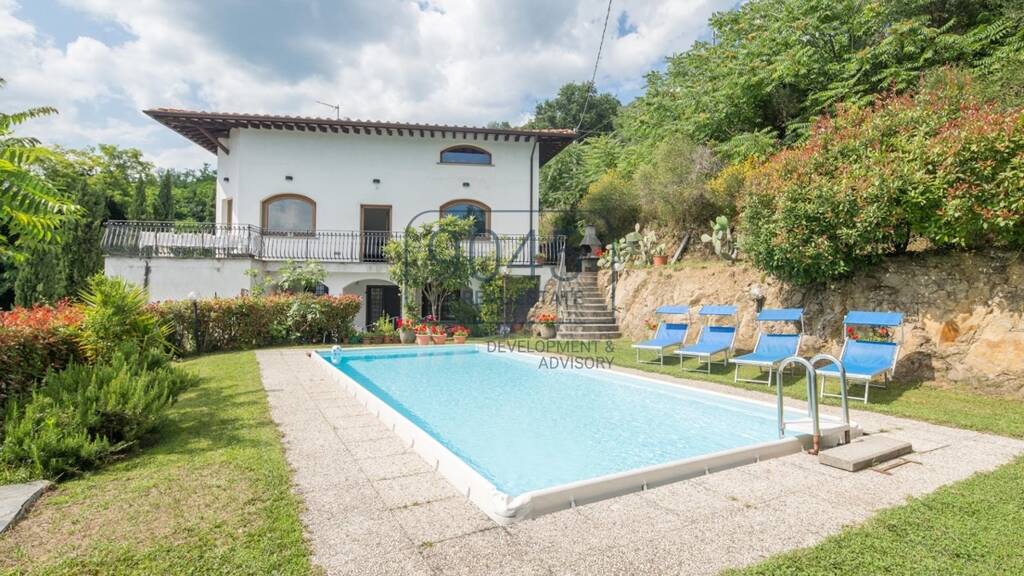 Eingebettet in die malerische Hügellandschaft der Toskana, nahe der Stadt Pescia, befindet sich dieses außergewöhnliche Anwesen. Umgeben von einer weitläufigen, grünen Panoramafläche bietet die Immobilie nicht nur eine idyllische Naturkulisse, sondern auch eine exzellente Anbindung an alle wichtigen Dienstleistungen der Umgebung. Das Anwesen besteht aus einer eleganten Villa von ca. 330 m², einem charmanten Einfamilienhaus von ca. 240 m² sowie großzügigen Gärten und Landflächen, die insgesamt etwa 3 Hektar umfassen.