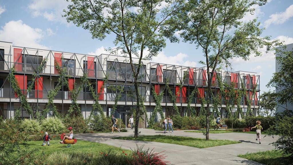 Zum Gebäude gehört auch ein Anteil am gemeinschaftlichen Innenhof. Die Kosten dafür sind ebenso wie die Freiflächen, die sich unmittelbar am Gebäude befinden, mit einkalkuliert.