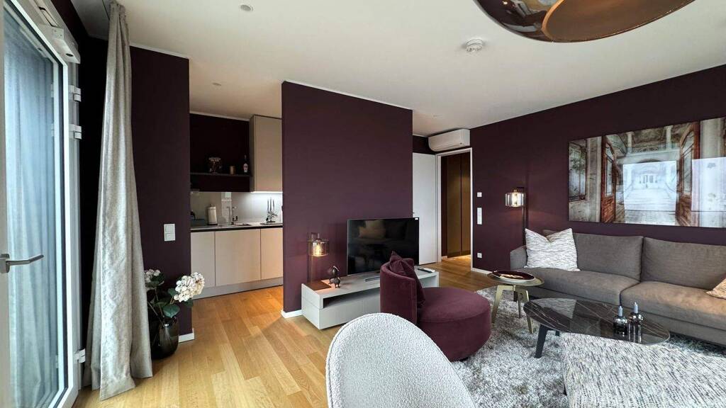Die durchdacht geschnittene Wohnung überzeugt mit einem offenen, großzügigen Wohn- und Kochbereich, der das Herzstück des Apartments bildet. Die hochwertige Möblierung ist stilvoll aufeinander abgestimmt und ermöglicht einen sofortigen Einzug - ideal für Berufstätige, Expats oder anspruchsvolle Stadtliebhaber. Ein gemütliches Schlafzimmer sowie ein weiteres Zimmer, das sich ideal als Arbeits- oder Gästezimmer eignet, bieten flexible Nutzungsmöglichkeiten. Der einladende Flur schafft eine angenehme Raumwirkung und verbindet alle Bereiche harmonisch miteinander. Das moderne Duschbad ist zeitlos gestaltet und hochwertig ausgestattet. Praktische Einbauschränke runden das Raumangebot funktional ab.