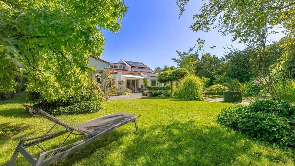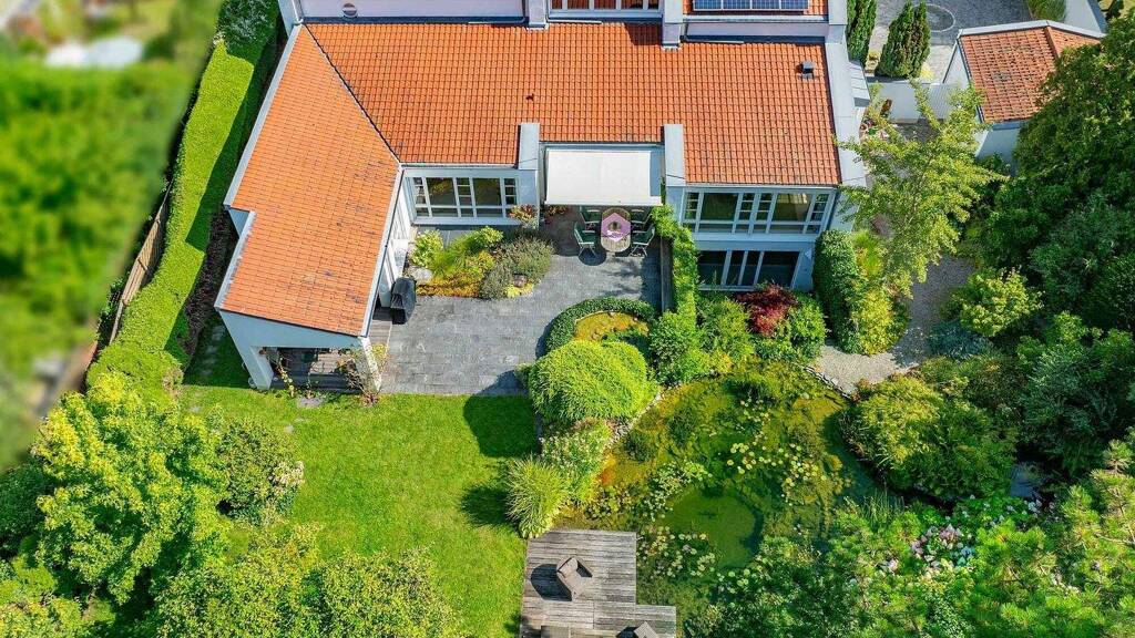 Ein Exkurs in den Garten entführt Sie auf eine sonnige, ca. 40 m² große Süd-Terrasse mit Blick in Ihre private grüne Oase. Eine überdachte Outdoor-Lounge mit Grillplatz und ein idyllischer Gartenteich mit Holzdeck laden zum Verweilen ein. Der große Garten, eingewachsen und liebevoll gestaltet, verspricht Ruhe, Idylle und pure Entspannung.