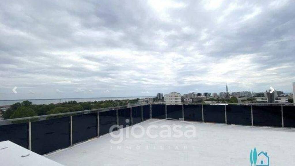 Über einen Aufzug mit privatem Zugangscode gelangt man direkt in das 8. Obergeschoss, das einen kleinen privaten Wohnbereich sowie den absoluten Höhepunkt dieser Immobilie bietet: eine ca. 120 m² große Dachterrasse / Solarium, ideal zum Sonnenbaden, Entspannen oder für Abendessen unter freiem Himmel. Die Terrasse ist bereits für die Installation einer bioklimatischen Pergola vorbereitet. Von hier eröffnet sich ein atemberaubender Panoramablick auf Lagune, Meer und die gesamte Skyline von Lignano