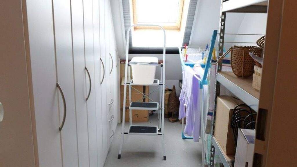 Die große Wohnküche bildet das kommunikative Herzstück der Wohnung und bietet ausreichend Platz für Kochen, Essen und Wohnen. Zwei separate Abstellräume - einer in der Wohnung, ein weiterer im Dachgeschoss - sorgen für zusätzlichen Stauraum.