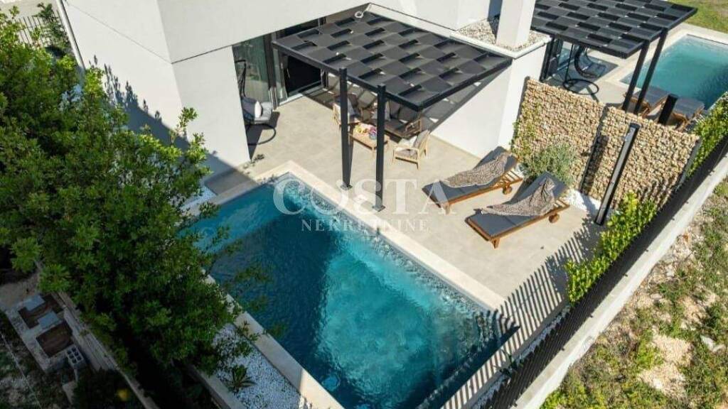 In attraktiver Lage in Privlaka bei Zadar steht eine Doppelhaushälfte mit Pool zum Verkauf. Das 180 m² große Gebäude befindet sich auf einem 433 m² großen Grundstück. Es besteht aus zwei separaten Wohneinheiten. Jede Einheit verfügt über eine Wohnfläche von 90 m² und einen 160 m² großen Garten. Die Einheiten erstrecken sich über ein Erdgeschoss und ein Obergeschoss. Im Erdgeschoss befinden sich ein geräumiges Wohnzimmer, eine Wohnküche, ein Gäste-WC und ein Eingangsbereich mit Treppenaufgang. Das Obergeschoss bietet drei Schlafzimmer und zwei Badezimmer. Vom Wohnzimmer gelangt man auf eine großzügige Terrasse mit Garten, Pool, Grillplatz, Liegewiese und einem Innenhof mit privatem Parkplatz.