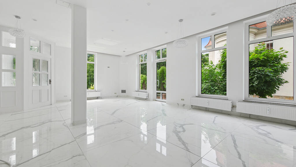 Das einladende Ambiente wird von hellen Marmorfliesen aus Italien unterstrichen, die neben ästhetischen Vorteilen auch praktische Pflegeleichtigkeit mit sich bringen.