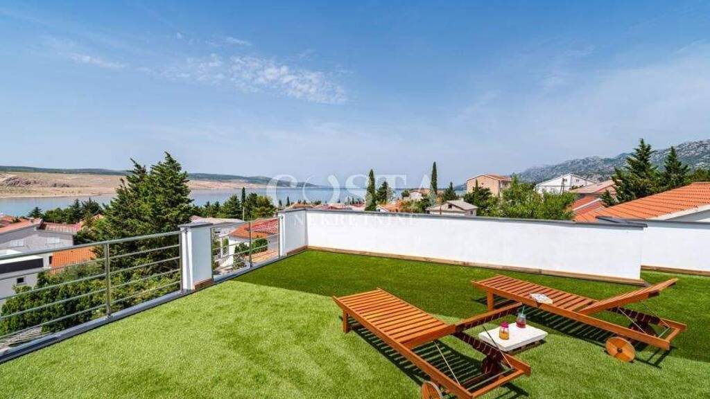 Zum Verkauf steht ein Haus mit 140 m² Wohnfläche auf einem 229 m² großen Grundstück. Es besteht aus zwei separaten und individuell nutzbaren Wohnungen, die absolute Privatsphäre und die unabhängige Nutzung jedes Raumes ermöglichen. Jede Wohnung verfügt über ein Schlafzimmer, ein Wohnzimmer, eine voll ausgestattete Küche und ein eigenes Badezimmer mit Dusche. Zwei Klimaanlagen in jeder Wohnung sorgen ganzjährig für ein angenehmes Raumklima. Jede der Wohnungen bietet Platz für bis zu vier Personen. Die obere Wohnung bietet Meerblick, während die untere Wohnung neben der Standardausstattung auch eine Sauna im Badezimmer bietet. Die großzügige Dachterrasse mit herrlichem Blick auf das Meer und die Umgebung lädt zum Sonnenbaden ein und bietet gleichzeitig einen wunderschönen Panoramablick. Es besteht die Möglichkeit, auf der Dachterrasse einen Swimmingpool sowie eine zusätzliche Wohnung zu errichten, was den Wert und die Attraktivität dieser Immobilie weiter steigern würde. Im Garten befinden sich ein Grillplatz, eine Außendusche und ein Bereich, der sich ideal zum Entspannen, Sonnenbaden und geselligen Beisammensein eignet. Die gesamten Außen- und Innenräume machen das Haus zu einer hervorragenden Investition, sowohl für die private Nutzung als auch zur touristischen Vermietung.