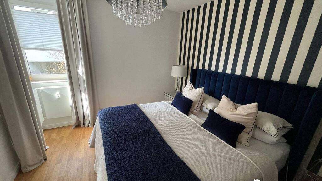 Über eine elegante Galerie erreichen Sie die zweite Etage der Wohnung. Diese wird derzeit als Ankleidezimmer genutzt und bietet dank maßgefertigter Einbauschränke viel Stauraum. Das angrenzende Hauptschlafzimmer überzeugt mit einem luxuriösen Ensuite-Badezimmer - ein Ort der Ruhe und Erholung.