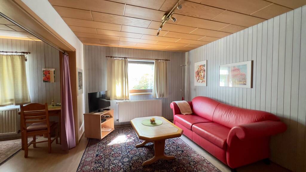 Both apartments are located in the basement and comprise 2 rooms each - living and sleeping area (2 single beds). They are comfortably furnished with a kitchenette with refrigerator and microwave, a pull-out couch set, wardrobe, shower-WC, SAT-TV, WLAN and garden with arbour.