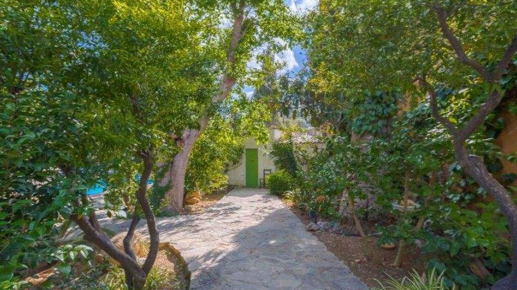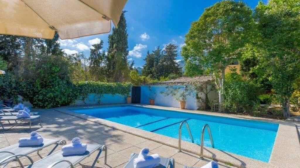 Die Hauptwohnbereiche öffnen sich zu einem charmanten Patio sowie zu einem großzügigen privaten Garten, ein außergewöhnliches Merkmal für eine Immobilie im Dorfzentrum. Der Garten umfasst einen Swimmingpool, umgeben von gewachsener mediterraner Bepflanzung, und bietet eine ruhige Atmosphäre für das Leben im Freien und gesellige Abende. Mehrere Räume genießen Ausblicke auf die umliegenden Berge sowie auf das historische Castell d'Alaró.