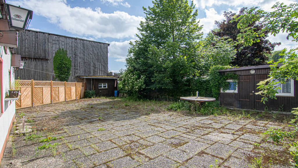 - Möblierter Gastraum - Ausgebaute Bar - Großer Biergarten - Ausschank im Außenbereich - Garage - Gas-Zentralheizung