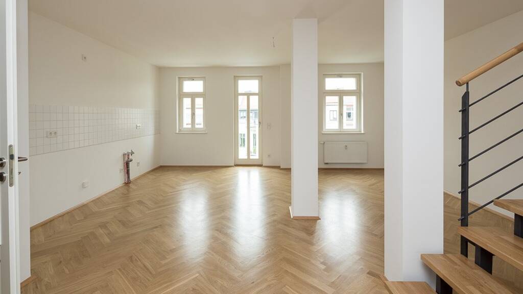 Gelegenheit in Leipzig Schleußig! Zum Verkauf gelangt in beliebter Wohnlage eine sehr schöne Maisonettewohnung in einem repräsentativen und 2012 aufwendig von der Leipziger Stadtbau AG rekonstruierten Gründerzeithaus. Die 4,5- Zimmerwohnung verfügt über helle und freundliche Wohnräume und befindet sich im 3. Obergeschoss und dem Dachgeschoss und ist bequem über einen Personenaufzug zu erreichen.