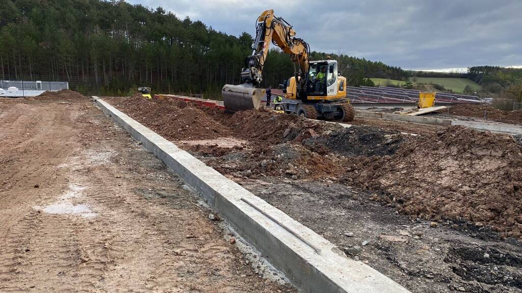 Die komplette Anlage ist videoüberwacht. Die Außenanlage/Zuwegung zwischen den Garagen wird komplett gepflastert. Hierfür werden hochwertige, sickerungsfähige Pflastersteine verwendet. Zusätzlich werden nach Bedarf Abwasserrinnen angelegt, die Grünflächen werden humusiert. Das Gelände wird mit einem Industriezaun in einer Höhe von ca. 2,00 m eingefriedet. Die Zufahrt ist durch ein Schiebetor gesichert.