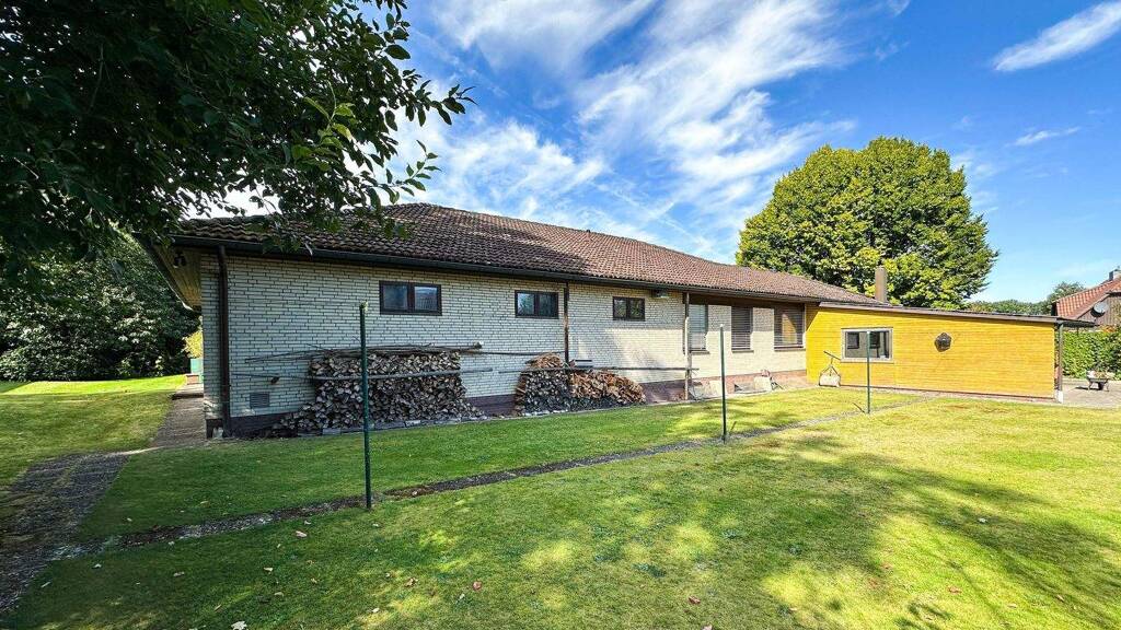 Dieser großzügig bemessene Bungalow überzeugt durch seine Vielseitigkeit und bietet zahlreiche Nutzungsmöglichkeiten für Familien, Selbständige oder Handwerker. Auf einem großen Grundstück gelegen, präsentiert sich das Haus mit einer optimalen Raumaufteilung, einer separaten Einliegerwohnung sowie viel Platz für Hobbys, Beruf und Fahrzeuge.
