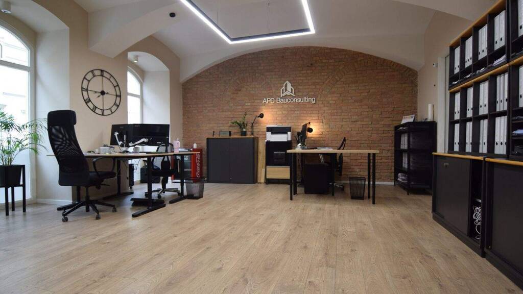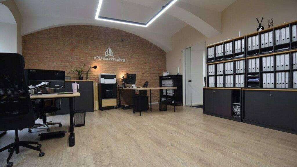 Vor wenigen Jahren saniert, bieten sich auf 120 m2 Nutzfläche 3 Büroräume, ein Besprechungszimmer mit Schiebetüren zu einem Innenhof sowie Teeküche und WC.