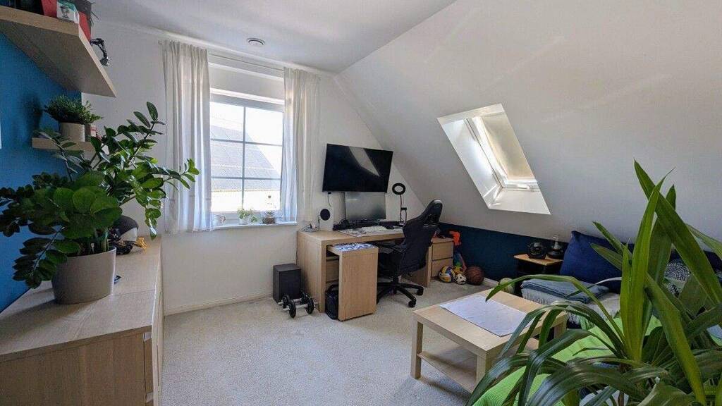 Elternschlafzimmer: Ein geräumiger Raum mit viel Platz für eine Schrankwand. Kinderzimmer: Zwei helle Kinderzimmer bieten ideale Bedingungen zum Spielen und Lernen oder weitere Nutzungsmöglichkeiten. Zusätzliches Büro: Ein kleineres Zimmer, ideal als Home-Office oder Hobbyraum nutzbar. Wellness-Bad: Das große Familienbad ist mit einer Badewanne, einer separaten Dusche und einem Doppelwaschbecken ausgestattet.