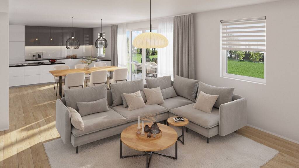 Der morderne Neubau erreicht den Effizienzhaus Standard 55 und wird schlüsselfertig übergeben.
