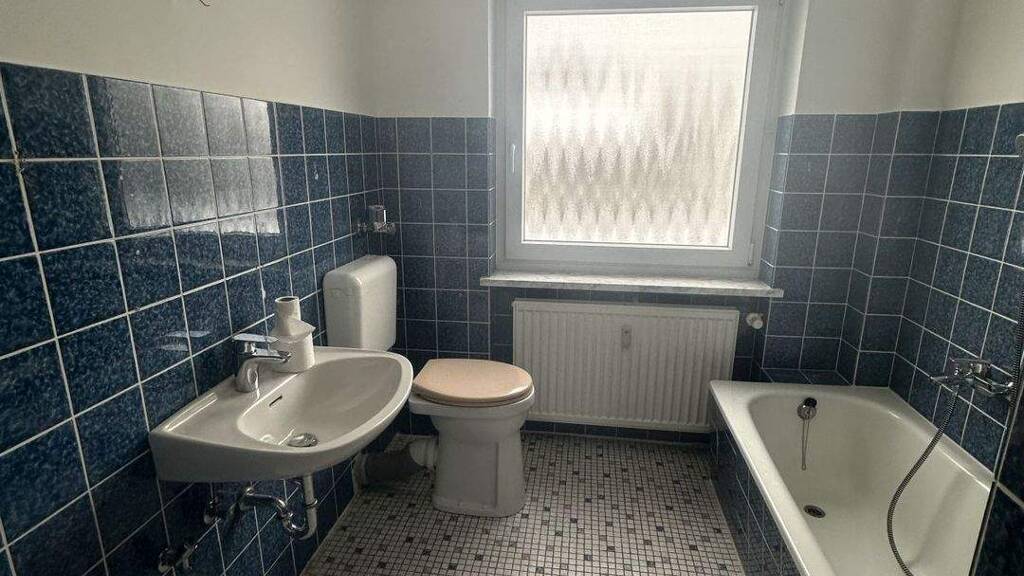 Das Badezimmer ist mit einer Badewanne ausgestattet. Ein praktischer Abstellraum sorgt für zusätzlichen Stauraum.
