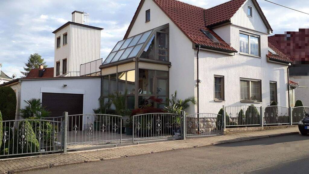 Besonderheiten/Ausstattung: Die Fenster, Außentüren und der gr. WG sind in Holz-Alu-Bauweise. Die kleinen WG haben Kunststoff oder Kst-Alu-Elemente. Fast alle Fenster besitzen elektr. Rolläden mit Alupanzer, im Wohnhaus mit Zentralsteuerung. Alle Dachkästen sind mit bronzefarbigen Alublechen zum Witterungsschutz verkleidet. Die meisten Dachrinnen (Kupfer) besitzen eine Heizung als Vereisungsschutz. Für die 5 kWp PV-Anlage (Bj. 2004) mit einem Jahresertrag von ca. 4.500 kWh (Förderung ausgelaufen), empfiehlt sich der Einbau eines Speichers zur Eigennutzung. Dachmaterial: Wohnhaus mit engobierten Dachziegeln NG mit Welleternit Turm mit Glasfliesschindeln kleine WG u. Lichthof mit Polycarbonatplatten Schmutz- und Regenwasser werden getrennt erfasst. Letzteres gelangt in drei Sickerschächte, wodurch die Entsorgungsgebühr entfällt.