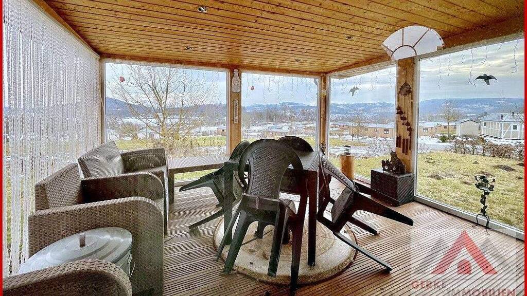 Gepflegter Zustand möbliert 2 Schlafzimmer 1 Bad mit Dusche Wohnbereich mit moderner Küchenzeile Wintergarten mit Panoramablick Gartenlaube/Garage als Abstellplatz Privater Stellplatz direkt am Haus Ruhige Lage mitten in der Natur mit Panoramablick