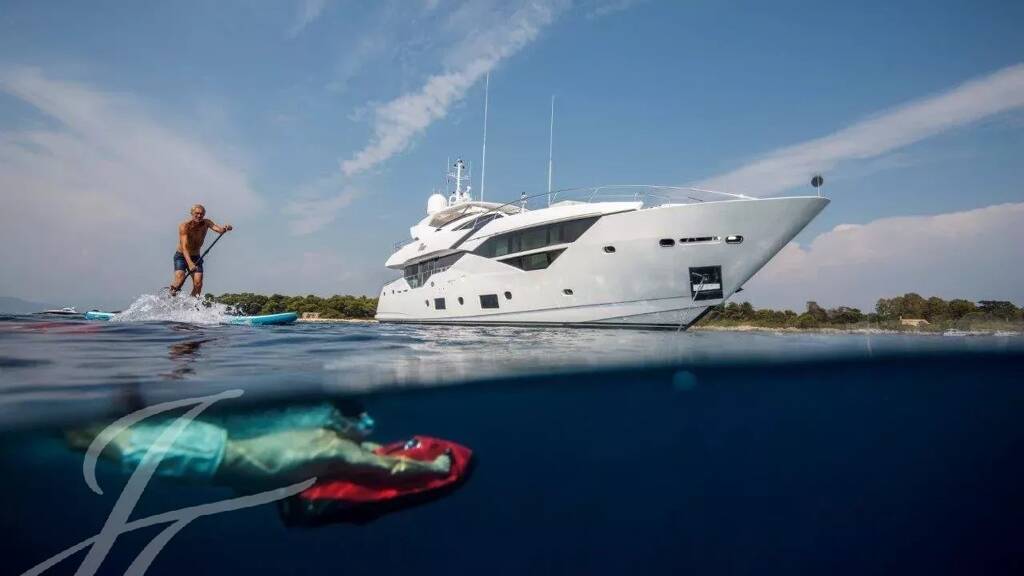 As one of the first of the new 116 models from the famed Sunseeker stable, focus is on exceptional space on deck, interior volume and natural light to accommodate 10 guests in sumptuous luxury. Elegant fabrics and mood lighting give FLEUR a sophisticated ambience both day and night. It is however FLEUR's exceptional inventory of state of the art audio visual entertainment and vast list of water toys that makes this yacht unique in the market.
