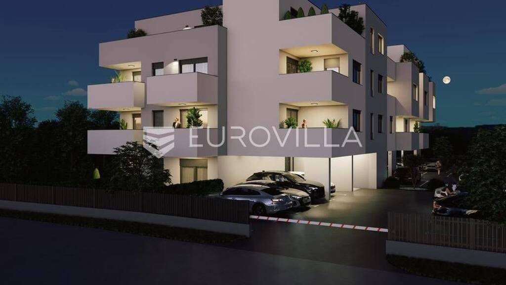 Dvosoban stan zatvorene povrsine 39 m2 smjesten na 2. Katu.Sastoji se od ulaza/garderobe, kupaonice, spavace sobe, dnevnog boravka, kuhinje s blagovaonicom te lode.Uz stan je obavezna kupnja spremista te parkirnog mjesta.-----Projekt suvremene stambene novogradnje s liftom izvedene u armirano-betonskoj konstrukciji s monolitnim medukatnim plocama. Pregradni zidovi izradeni su po Knauf sustavu s ispunom od mineralne vune, a zidovi izmedu stanova dodatno su toplinski i zvucno izolirani. Objekt je projektiran s ravnim, neprohodnim krovom u viseslojnoj izvedbi te ETICS fasadom s mineralnom vunom i stiroporom debljine 15 cm i zavrsnim slojem silikatne zbuke.Vanjska PVC stolarija opremljena je toplinski izoliranim roletama na elektromotorni pogon, kliznim stijenama i komarnicima na svim otvorima. Unutarnja stolarija izradena je od drva, sa zvucno izoliranim vratima, dok su ulazna vrata protuprovalna, protupozarna i zvucno izolirana.Zajednicki dijelovi zgrade ukljucuju ulaz i stubista oblozena granitom, videonadzor, te posebno brojilo plina, vode i struje za svaki stan s mogucnoscu daljinskog ocitanja. U okolisu su predvideni asfaltirani i betonski kolni prilazi, hortikulturno uredene zelene povrsine, dekorativna rasvjeta i odvojeni prostor za spremanje otpada.Stanovi imaju visinu prostorija od od 260 do 270 cm u dnevnim dijelovima i od 250 cm - 260 cm u kupaonicama i hodnicima. Sanitarne prostorije opremljene su kvalitetnim uredajima svjetskih proizvodaca poput GROHE i TECE, s fleksibilnom hidroizolacijom, keramikom I. klase te podnim grijanjem. Predvidena je mogucnost odabira izmedu kade ili tus izvedbe s paravanima od kaljenog stakla. Podovi stanova oblozeni su viseslojnim hrastovim parketom, dok su kuhinje, kupaonice i lode izvedene u keramickim plocicama.Grijanje i priprema tople vode predvideni su putem kondenzacijskih plinskih bojlera i podnog grijanja u svim prostorijama, uz termostate u svakoj sobi. Stanovi ce biti klimatizirani inverter klima uredajima (multi-split sustav). Ventilacija sanitarnih prostora rijesena je niskosumnim ventilatorima, a kuhinje imaju predvidene odsisne sustave.Elektroinstalacije ukljucuju videoportafon u boji, LED rasvjetu, informaticku mrezu cat 6, uticnice za TV i internet u svakoj sobi te rolete na elektromotorni pogon. Sve kupaonice imaju dodatne prikljucke i rasvjetu prilagodenu modernom standardu.Investitor daje jamstvo na konstrukciju i hidroizolaciju od 10 godina, na ostale radove 2 godine, a na opremu i uredaje prema jamstvu proizvodaca. Posebna paznja posvecena je odabiru materijala i izvedbi, pri cemu su koristeni iskljucivo kvalitetni i provjereni sustavi, cime je osigurana trajnost i visoki standard stanovanja.... Vise na eurovilla.hr, ID: 277827
