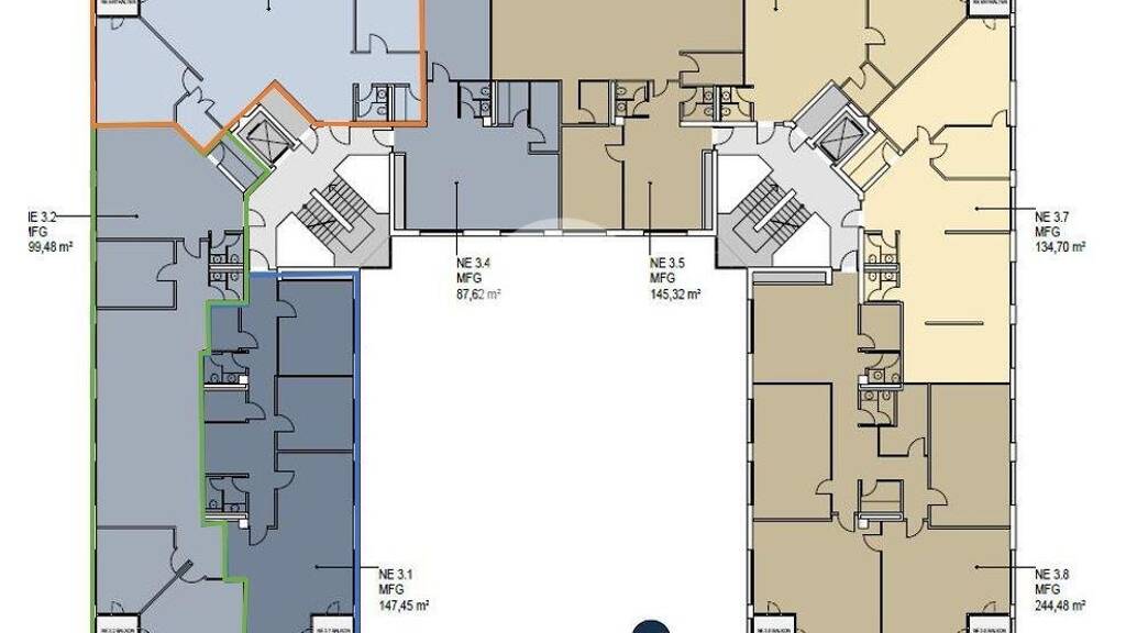 Ein großzügiges Foyer ermöglicht eine repräsentative Darstellung Ihres Unternehmens. Die vorhandenen Balkone laden darüber hinaus zum Verweilen in den Pausen ein.