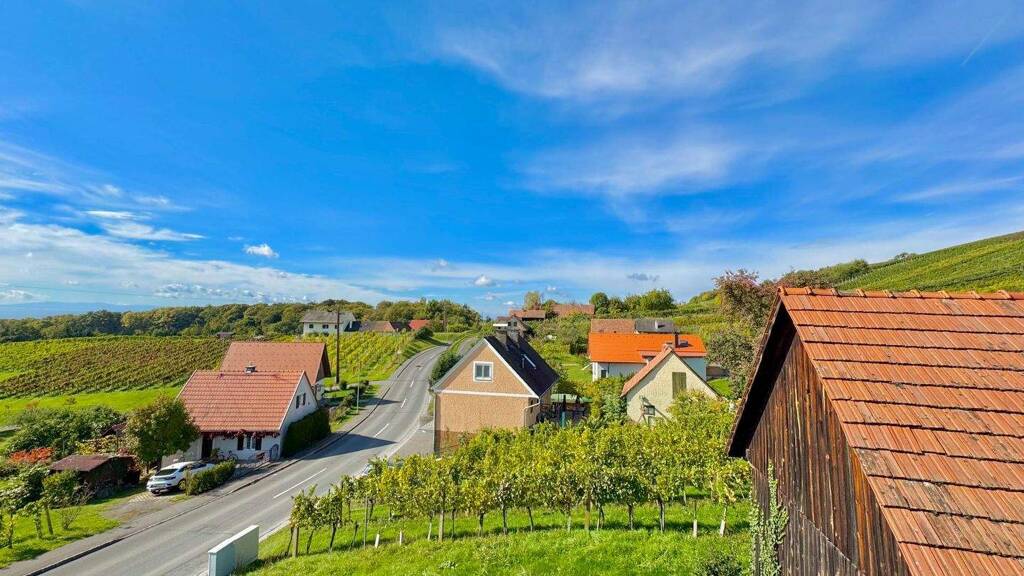 Wohnkomfort mit hoher Lebensqualität verbindet. Das kernsanierte Haus umfasst nur drei Wohneinheiten mit jeweils eigenem Zugang, wodurch Privatsphäre garantiert ist. Im Erdgeschoss erwartet Sie ein lichtdurchfluteter Wohn-/Essbereich mit bodentiefen Glasfronten die einen spektakulären Blick auf die umliegende Natur der sanften Hügel der Südoststeiermark bieten. Auf der über den Wohnbereich zu betretenden, südseitigen Terrasse lassen sich laue Sommerabende wunderbar verbringen. Für die zukünftigen Eigentümer ein erhabenes Wohnerlebnis. Auf dieser Ebene befindet sich auch das Badezimmer mit separatem Gäste-WC. Über die Treppe gelangen Sie ins Dachgeschoss wo sich der Masterbereich mit Schlafzimmer und eigenem Badezimmer mit WC befindet. Die Wohnung verfügt über eine Fußbodenheizung. Die Raumheizung erfolgt über eine zentrale Wärmepumpenanlage, am Dach des Gebäudes ist eine Solarthermieanlage installiert die Sonnenenergie für das benötigte Warmwasser umwandelt. Fenster und Terrassentüren sind mit elektrisch bedienbaren Rollläden für Schutz, Komfort und Behaglichkeit versehen. Die 3-Fach-Verglasung bietet zudem eine hervorragende Wärme- und Schalldämmung. Die Wohnräume sind mit hochwertigem Parkettboden versehen und schaffen eine angenehme Wohlfühlatmosphäre. Eine großzügige Garage mit ca. 31 m² Nutzfläche sowie ein Kellerraum gehört ebenfalls zur Wohnung. Überdachte KFZ-Stellplätze sind optional um je EUR 15.000,- erhältlich. Die exklusive Wohnanlage überzeugt nicht nur durch ihre hohe Privatsphäre, sondern auch durch ihre perfekte Lage, die es ermöglicht, in nur wenigen Minuten zahlreiche angebotene Ausflugsziele zu erreichen.