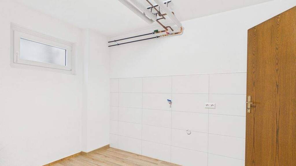 Die hier zu Vermietung stehende Wohnung, die im Erdgeschoss eines 2-Familienhauses liegt, wurde 2025/26 modernisiert. Das Haus wurde in Hanglage gebaut, weswegen die Wohnung mit ihrem hinteren Bereich (Abstellraum) im Erdreich liegt.