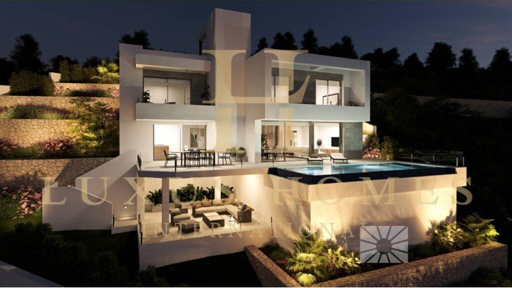 Unsere Agentur ist stolz darauf, Ihnen diese neu gebaute Luxusvilla zu präsentieren, die sich auf einem Grundstück in der Nähe von Teulada auf einem erhöhten Grundstück befindet, das es dem Anwesen ermöglicht, einen Blick auf das Meer und das Landesinnere der Costa Blanca Nord zu genießen. Die Luxusvilla mit Garten und privatem Swimmingpool erstreckt sich über drei Etagen, wobei sich der Zugang in der obersten Etage befindet, wo sich der Parkplatz und der Aufzug befinden, der das gesamte Haus verbindet. Auf der mittleren Etage befinden sich die Schlafzimmer, insgesamt 3 Schlafzimmer, alle mit Zugang zur Terrasse, ein Luxus, um aufzuwachen, auf die Terrasse zu gehen, um frische Luft zu atmen und den Tag mit Blick auf das Mittelmeer zu beginnen. Das Erdgeschoss, ein großer lichtdurchfluteter Wohnbereich, der mit der Küche und dem Außenbereich verbunden ist, macht diesen Raum zum Herzstück des Hauses. Die Außenbereiche dieser Luxusvilla wurden bis ins kleinste Detail gepflegt, ein an das Grundstück angepasster Garten mit terrassenförmigen Mauern, die verschiedene Räume und Ebenen schaffen, und eine große Terrasse mit einem Infinity-Pool, der mit dem Meer verschmilzt, sind die charakteristischsten Elemente.