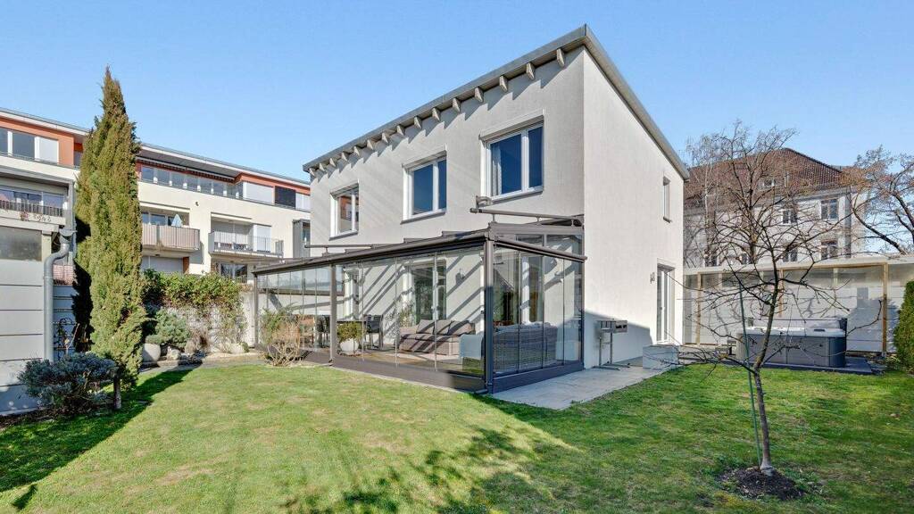 Dieses einzigartige Einfamilienhaus bietet Ihnen die perfekte Kombination aus moderner Bauweise, energieeffizienter Ausstattung und einer unschlagbaren Lage im begehrten Röthelheimpark in Erlangen. Freuen Sie sich auf ein Zuhause, das mit höchstem Wohnkomfort, Nachhaltigkeit und Qualität überzeugt. Die ideale Infrastruktur bietet kurze Wege zu Kitas, Schulen, Naherholung im angrenzenden Waldgebiet sowie dem Siemens-Campus und der A73. Dank Fußbodenheizung im gesamten Wohnbereich, elektrischen Außenrollläden und moderner Gebäudetechnik genießen Sie innovative Standards. Ein heller Wintergarten mit Outdoor-Küche, eine sonnige Terrasse mit Whirlpool und ein liebevoll gestalteter Garten laden zum Wohlfühlen ein - ein wahrer Rückzugsort ohne Neubau-Stress und direkt bezugsbereit.