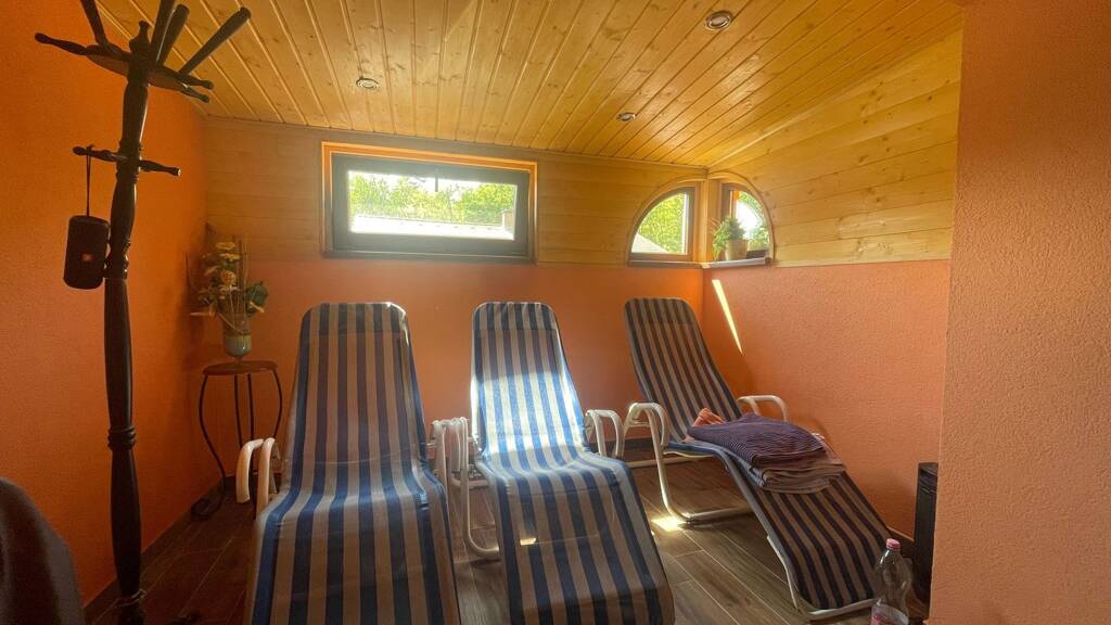 Direkt neben dem Weinstüberl befindet sich der separat zugängliche, neue Wellnessbereich mit 4-Personen-Whirlpool, Sauna, Dusche und Ruheraum. Vor dem Haus liegt der moderne, 8x4 m große Swimmingpool mit verschiebbarem Gravoplast-Dach – ganzjährig nutzbar.