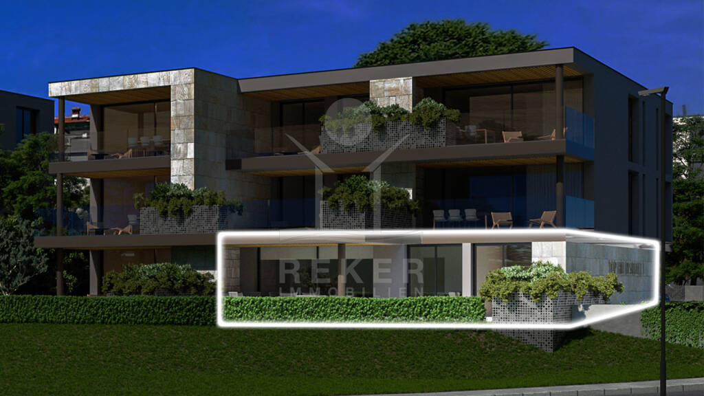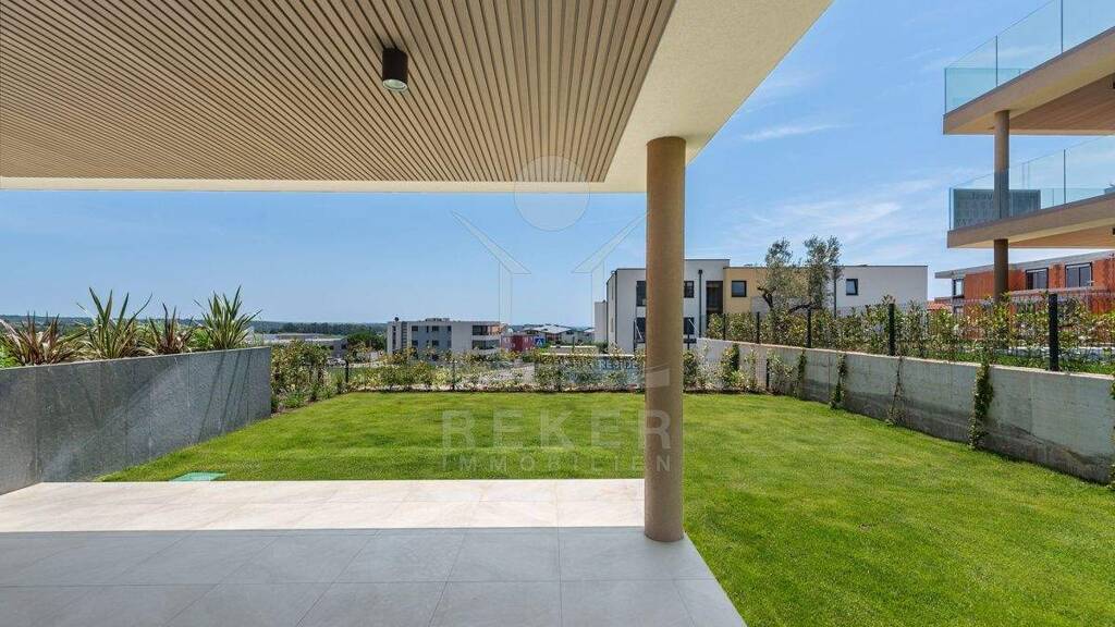 Diese moderne Gartenwohnung überzeugt mit hochwertiger Ausstattung, Meerblick und durchdachter Raumaufteilung. Große Glasflächen, Fußbodenheizung und Klimaanlage sorgen für Komfort. Der private Garten und die überdachte Terrasse mit Sommerküche machen das Wohnen komplett.