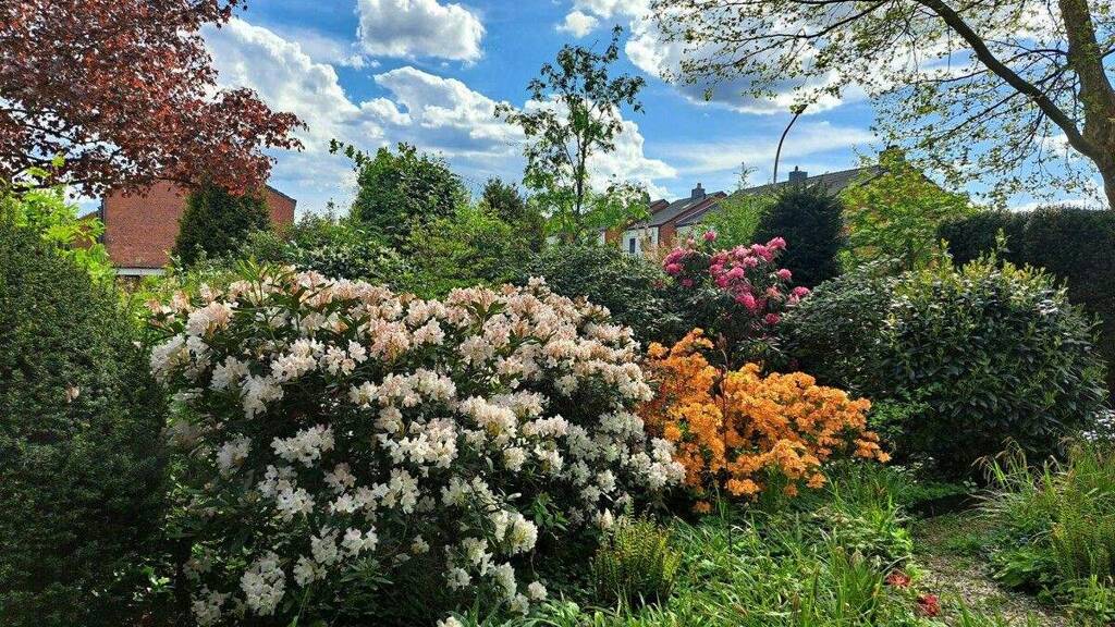 Die Süd-West-Ausrichtung von Terrassen und Balkonen sorgen für viele Sonnenstunden und helle Räume. Der schöne Gartenbereich vor und hinter dem Haus bietet sicheren Freiraum für Kinder und lädt zum Entspannen im Grünen ein. Durch die versetzte Anordnung der Häuser entsteht zusätzliche Privatsphäre.