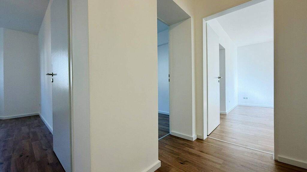 Bemerkungen: Vollständige Renovierung: neuer Boden (Holzdekor) mit weißen Holzfußleisten, neue weiße Innentüren mit Edelstahlgriffen, frisch gestrichene Wände durchgehend in Weiß. Großformatige Fliesen in Marmoroptik, beleuchteter Spiegel, Handtuchheizkörper. Separates WC mit Fenster und weißen Wandfliesen. Alle Zimmer mit Heizkörpern und ausreichend Steckdosen. Balkon vorhanden. Kellerabteil im Gebäude inklusive.